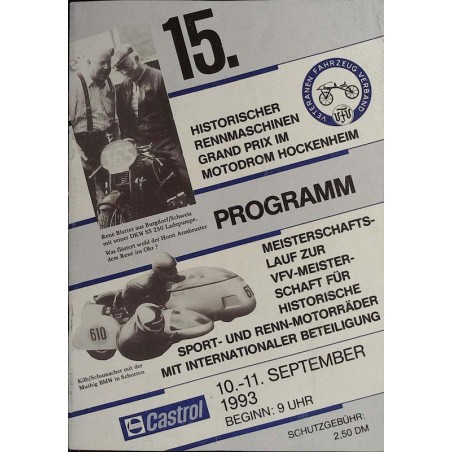 Titelbild: 15. Historische Rennmaschinen Grand Prix im Motodrom Hockenheim. Programm Meisterschatfslauf zur VFV-Meisterschaft für historische Sport und Renn Motorräder mit internationaler Beteiligung
