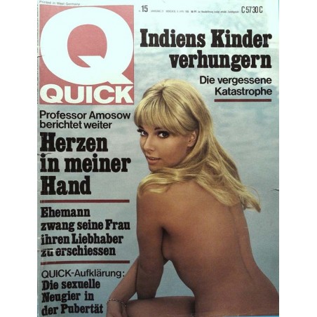 Information, Unterhaltung So kommen Sie aus Kaufvertragen raus Hier und Heute QUICK las mit Indiens Kinder verhungern Mädchen auf der Polizeiwache nackt ausgezogen Sie fanden keinen Ausweg aus dem Flammenmeer Tote Ehefrau kehrt aus Rußland heim Ehemann zwang seine Frau, ihren Liebhaber zu erschießen Teenager-Orgien im Patrizierhaus Ein Superfilm fur 40 Millionen Mark Der Schulranzen rettete sein Leben Die Oma mit den langen Fingern Im Galopp durch den Todesstreifen Lebensberater Dr. Langendorff Besser leben QUICK-Reise Fruhling an der Bergstraße/Tanz auf dem Mittelmeer Kunststück, wenn ein Affe im Tor steht Humor QUICK-Auto Arzte streiten um Krebsarzt Dr. Weber QUICK-Magazin Leserbriefe Das Menü der Woche Horoskop Kreuzworträtsel