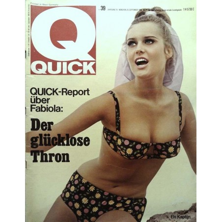 Hier und heute Spionin der Liebe — ein Teenager als blinder Passagier der 6. US-Flotte General Mond in Vietnam: eine alte deutsche Erfindung Die Börse der Könige Böses Spiel mit guter Mine Groteske um einen Blindgänger Leserbriefe "Phantom" — der neue Superjäger für die Bundeswehr? Ein Wunder namens Messgigue Helft Südtirol hört auf zu morden! Sultan, gib den Knochen her — ein Dackel tyrannisiert einen Löwen Das ist die Barbel aus Moos. Pfeffer aus Niederbayern Brauchen wir eine neue Moral? Fabiola. Der glücklose Thron Kam Adam aus der Retorte? Anatol Aber: Intimitaten Musik mit QUICK Ihr Blatt, meine Damen Mode: Das jüngste London, das es je gab Mit Siebzehn sterben die Träume Ich fotografierte die Geburt meines Kindes Macht Schönheit dumm? Mann oder Mauer: QUICK-Reporterin im Kloster Die besten Rezepte