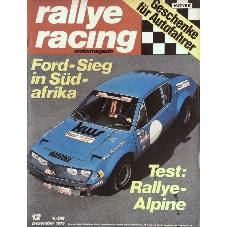 VERSCHIEDENES Leserforum rallye racing-Notizen Neue Formel 1-Wagen rallye racing-Fahrerlehrgang Renault-5-Pokal Weihnachtsgeschenke für Autofahrer Neue Pirelli-Renngurteireifen Oldtimer-Rennen