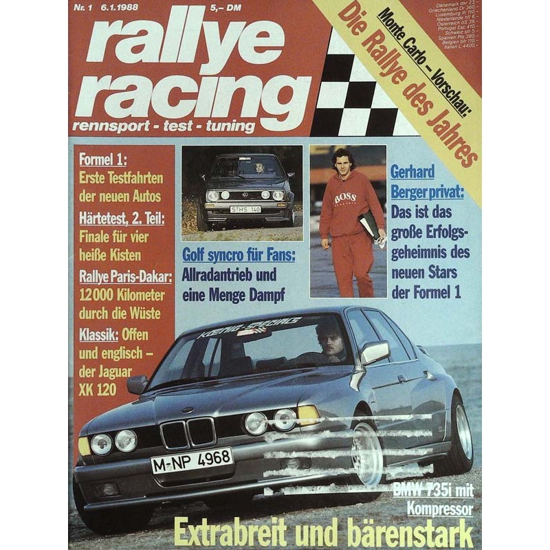 PLUS: Monte Carlo Vorschau: Die Rallye des Jahres - Formel 1: Erste Testfahrten der neuen Autos - Härtetest, 2. Teil: Finale für vier heiße Kisten - Rallye Paris Dakar: 12000 Kilometer durch die Wüste - Klassik: Offen und englisch, der Jaguar XK 120 - Golf syncro für Fans: Allradantrieb und eine Menge Dampf - Gerhard Berger privat: Das ist das große Erfolgsgeheimnis des neuen Stars der Formel 1