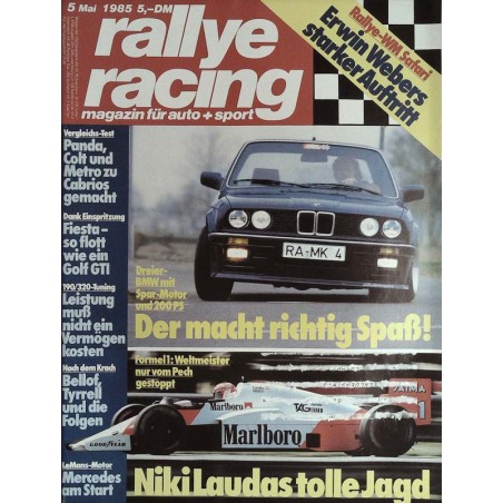 RENNSPORT Endurance-WM Mugello: Lancia endlich ein Porsche-Gegner? DSM Nürburging: Auftakt nach Maß für ans Stuck DPM Zolder: Harald Grohs hatte Glück mit den Reifen Formel 1 Rio: Prost setzte den Maßstab für die WM '85 Sie haben den Erfolg gepachtet Lauda, Dennis, Prost - das Sieger-Team von Rio Formel 3000 Silverstone: Im ersten Laufgleich Thackwell Formel 3000 Thruxton: Pirros riskantes Spiel im Regen Formel 3-DM: Zwei Ausländer beherrschten die Szene TWEM Monza: Tom Walkinshaws Roverim Gänsemarsch