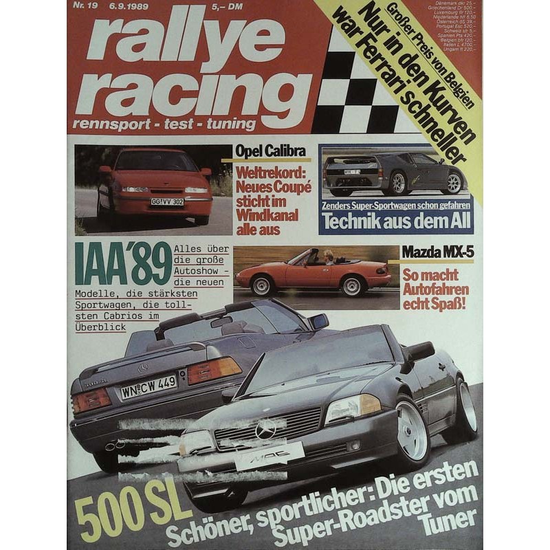PLUS: Opel Calibra Weltrekord: Neues Coupe sticht im Windkanal alle aus - Mazda MX-5: So macht Autofahren Spaß - Zenders Super-Sportwagen schon gefahren: Technik aus dem All - Großer Preis von Belgien: Nur in den Kurven war Ferrari schneller - IAA 89: Alles über die große Autoshow, die neuen Modelle, die stärksten Sportwagen, die tollsten Cabrios im Überblick