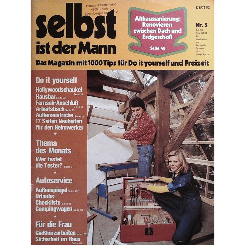 PLUS: Hollywoodschaukel - Hausbar - Fernseh-Anschluß - Arbeitstisch - Außenanstriche - 17 Seiten Neuheiten für den Heimwerker - Thema des Monats: Wer testet die Tester? - Autoservice: Außenspiegel, Urlaubs-Checkliste - Campingwagen - Für die Frau: Gießharzarbeiten, Sicherheit im Haus
