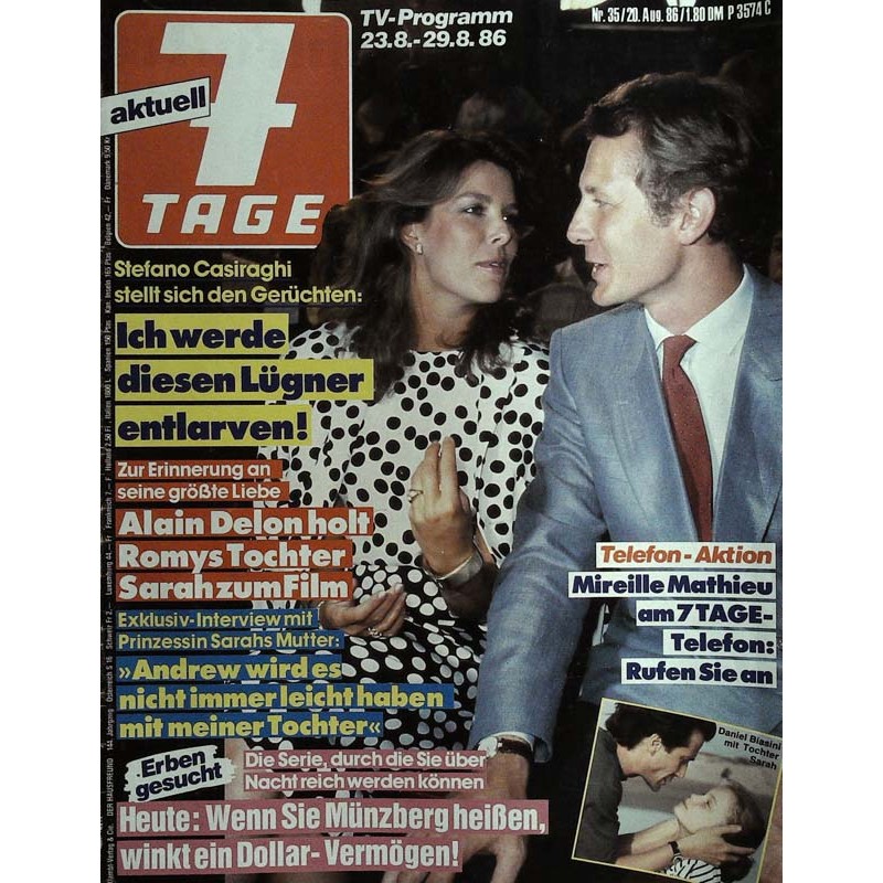 PLUS: Zur Erinnerung an seine größte Liebe: Alain Delon holt Romys Tochter Sarah zum film - Exklusiv Interview mit Prinzessin Sarahs Mutter: Andrew wird es nicht immer leicht haben mit meiner Tochter - Erben gesucht: Die Serie, durch die Sie über Nacht reich werden können - Heute: Wenn sie Münzberg heißen, einkt ein Dollar Vermögen - telefon Aktion: Mireille Mathieu am 7Tage Telefon