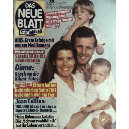 PLUS: Aids: erste Erfolge mit neuen Medikamente - Wie Mildred Scheel! Sarahs Hilfe für Krebskranke - Diana: Krach um die Bikini Fotos - Unfaßbar: Eltern halten behinderten Sohn (16) gefangen wie ein Tier - Joan Collins: 100.00 Mark für ihren Deutschland Besuch - Heinz Rühmanns Enkelin: Die Schwarzwaldklinik hat ihr Leben verändert