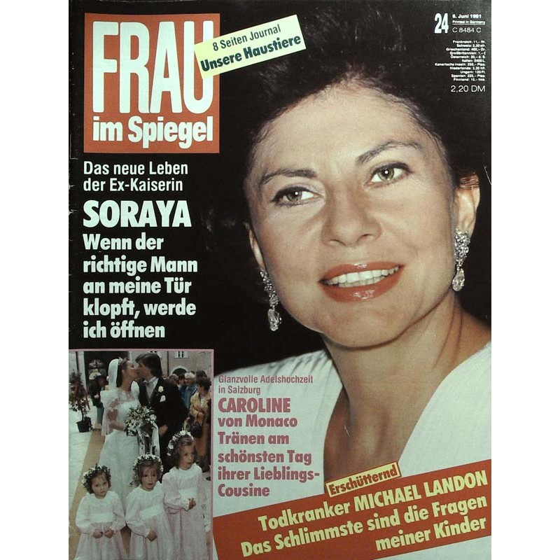 PLUS: 8 Seiten Journal: Unsere Haustiere - Glanzvolle Adelshochzeit in Salzburg: Caroline von Monaco, tränen am schönsten Tag ihrer Lieblings-Cousine - Erschütternd: Todkranker Michael Landon, das schlimmste sind die Fragen meiner Kinder