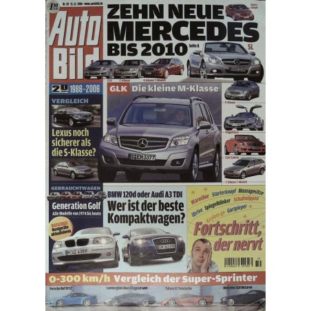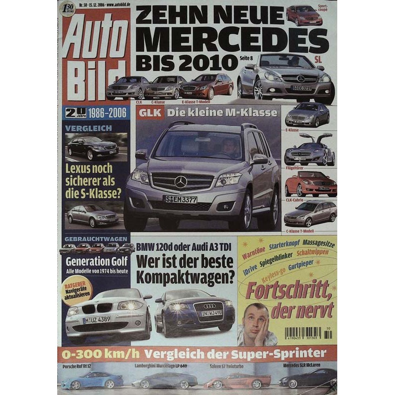 PLUS: Zehn neue Mercedes bis 2010 - Vergleich: Lexus noch sicherer als die S-Klasse - Gebrauchtwagen: Generation Golf, alle Modelle von 1974 bis heute - Ratgeber: Navigeräte aktualisieren - 0-300 km/h: Vergleich der Super Sprinter wie Porsche, Lamborghini, Saleen, Mercedes . BMW 120d oder Audi A3 TDI: Wer ist der beste Kompaktwagen? - Fortschritt der nervt: Warntöne, Starterknopf, Massagesitz, iDrive, Spiegelblinker, Schaltwippen, Keyless-go, Gurtpieper