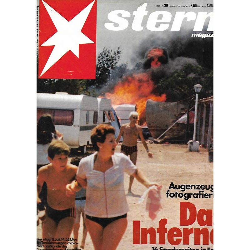 Titelbild: Augenzeugen fotografierten Das Inferno. 16 Sonderseiten in Farbe aus Tarragona. Dienstag den 11 Juli um 14:35 Uhr explodierte ein Tanklastwagen am Rande des Campingplatzes. Sekunden später ist überall Feuer und Tod