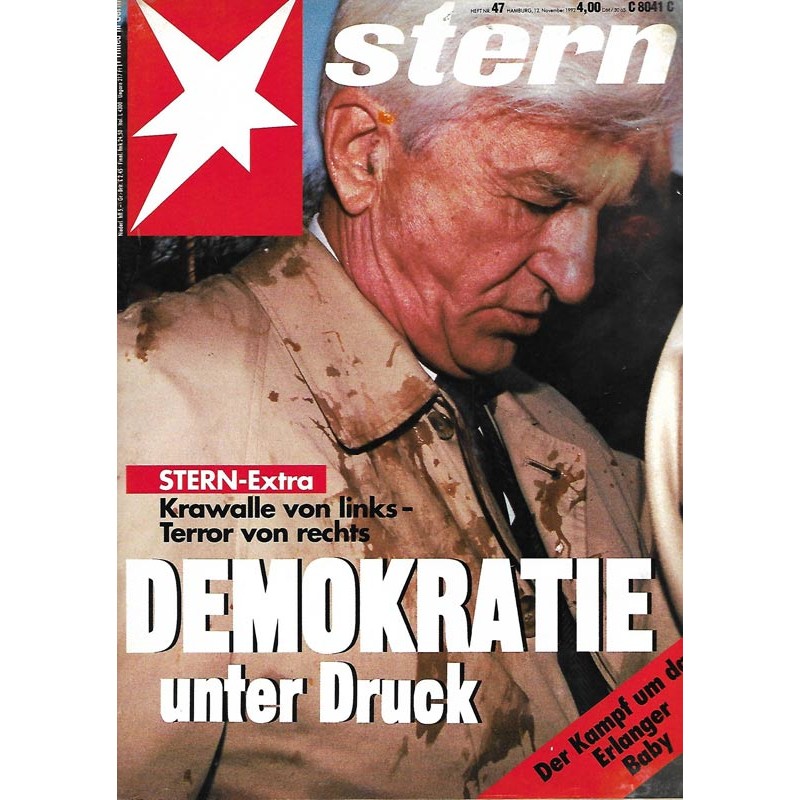 STERN Extra: Die neuen Nazis greifen an »Der Feind steht rechts« — immer noch. Von Heinrich Jaenecke - Straftaten: Die Spur der Gewalt - Werwolfgruppe: Hinrichtung am See - Dresden: Die erfolgreiche Arbeit einer Sonderkommission gegen politisch motivierte Gewalttaten - Dannenberg: Der Riß zwischen Jugendlichen geht tief — auch in der Provinz - Radikale Organisationen: Rechter Aufmarsch - Eine RAF von rechts? Interview .mit dem Verfassungsschützer Ernst Uhrlau