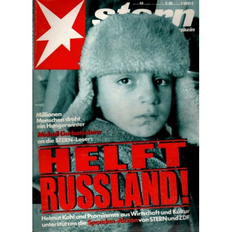 Titelbild: Helft Russland! Millionen Menschen droht ein Hungerwinter. Michail Gorbatschow an die Stern Leser: Helft Russland! Helmut Kohl und Prominente aus Wirtschaft und Kultur unterstützen die Spenden Aktion von Stern und ZDF