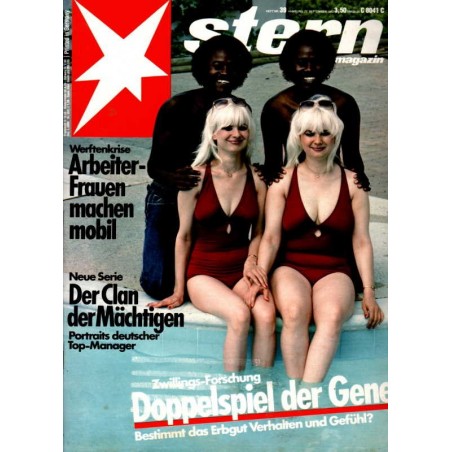 DEUTSCHLAND Arbeitskampf: Wie Hamburger Arbeiterfrauen ihren Männern beim Kampf um die Arbeitsplätze helfen Frauen streiten um gerechten Lohn und Gleichberechtigung Hessen: Der Mann der sanften Tour — Der CDU-Spitzenkandidat Walter Wallmann setzt im Wahlkampf auf Harmonie und Optimismus Für die FDP geht es um die Rückkehr ins Parlament, für die Grünen ums Überleben im Landtag Alpen: Immer auf der Höhe—die farbige Geschichte der Alpenvereinshütten STERN: In eigener Sache Flick-Affäre: Die Bonner Staatsanwaltschaft will jetzt Anklage gegen Otto Graf Lambsdorff, Hans Friderichs und Eberhard von Brauchitsch erheben Bremen: Ein Hauch von Großer Koalition — Der Wahlkampf an der Weser Grenzschutz: Weshalb ein Kommandeur das Personalvertretungsgesetz einschränken möchte Deutschlandfrage: Egon Bahr über Günter Gaus. Buch »Wo Deutschland liegt« Behördenwillkür: In Niederbayern soll ein Frührentner für die Bestattung seines amputierten Unterschenkels aufkommen Kreditschwindel: Der Berliner Rechtsanwalt und CDU-Abgeordnete Karl-Heinz Schmitz ermöglichte dem Betrüger Giaro Vardi, Millionen zu erbeuten