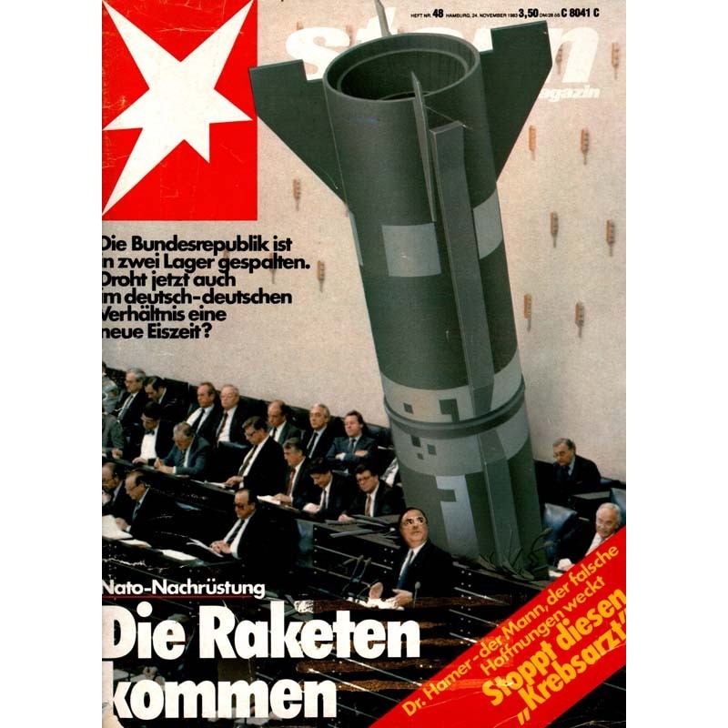Titelbild: Nato Nachrüstung: Die Raketen kommen. Die Bunderepublik ist in zwei Lager gespalten. Droht jetzt auch im deutsch-deutschen Verhältnis eine neue Eiszeit?