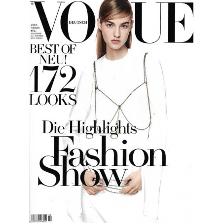 MODE EN VOGUE Ein schillernder Zweiohrhase, Mode zum Ausmalen und das Best-of einer Model-Legende NEW COOL Favoriten aus der Klasse der jungen Meister RUNWAY-REPORT Vom Comeback des Slipdress über opulente Hosenanzüge bis zu den Newcomern auf dem Laufsteg FASHION SHOW Auf 72 Seiten: die Mode-Highlights für Frühjahr/Sommer 2016 VOGUE FAVORITEN Schmuck von Hemmerle