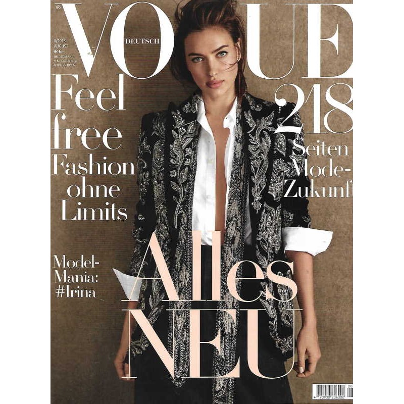 MODE EN VOGUE Meisterwerke von Karl Lagerfeld, Legenden von Levi's, Do-it-yourself-Service von Akris WHAT'S NEXT? Mode-News Herbst/Winter 2016/17 SONNEN-ENERGIE Warme Farben wie Gelb und Gold helfen gegen den Winterblues NAH & WEIT Anziehend: gegensätzliche Silhouetten LACK & LEDER Fetisch-Looks verführen die Phantasie SHINE ON Zurück in die Zukunft: Glam-Rock-Accessoires PURE MAGIE Von zart bis Art: Pinktöne sorgen für bezaubernd rosige Zeiten ALLES NEU Auf 64 Seiten: Die Highlights aus den neuen Herbst/Winter-Kollektionen, präsentiert von fünf Supermodels LILY Die Sehnsucht nach Ungebundenheit und Freiheit weckt vielfältige Assoziationen, Marine-looks stehen sinnbildhaft für Abenteuer, voluminöse Formen und fließende Silhouetten ROSIE Die Mode liebt starke Statements und flirtet mit Exzentrik, kräftige Farben und prägnante Muster dienen — jetzt auch in Herbst und Winter— als Eyecatcher IRINA Vom Trench de luxe bis zum Oversize-Mantel: High-Fashion-Basics präsentieren sich im facettenreichen Stilpluralismus und nehmen uns mit auf eine Zeitreise EMILY Eine unerschöpfliche Ideengeberin: die Natur. Im Mittelpunkt stehen Leder, bunter Strick, Pelze und Animalprints. Auch das Thema Nachhaltigkeit erhält eine höhere Aufmerksamkeit STELLA Reizvolles Spiel mit Gegensätzen: stark und zart, streng und verspielt. Elemente aus der Männermode treffen auf feminine Details, Leder kontrastiert mit Spitze. Das Ergebnis: Looks voller Erotik, so vieldeutig wie vielschichtig VOGUE FAVORIT Holzschalen von Friedemann Buhler