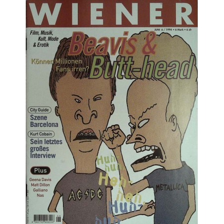 Aktuell Beavis & Butt-head. Alles über die beiden Doofköppe: Was für ein Idiot ist ihr Schöpfer? Was ist cool und was Scheiße? Wer sind ihre Lieblingsopfer? Pin-up. Millionen von Lesern verehren ihre nackte Lisa wie eine Frau, die sie nie haben werden. Ein Tag im Leben eines Pin-up-Girls. Matt Dillon. Kann er in Hollywood auch weichere Saiten aufziehen? Kurt Cobain. „Nie war ich so glücklich" — sein letztes großes Interview exklusiv im WIENER. Geena Davis. „Was, wenn im Körper einer Sexgöttin eine Feministin wohnt?" Windsurfen. Die besten Boards, Segel, Reiseziele und Windsurfer. Blue Mode. Alte Cover des legendären Jazz-Labels im modisch-aktuellen Styling. Nas. Wunderkind des HipHop Letzte Seite. Designer verpassen der deutschen Fußball-WM-Elf neue Trikots.