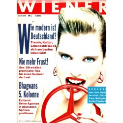 REPORTAGE BHAGWANS 5. KOLONNE Die Bhagwan-Organisation liegt seit Jahren im Koma, aber Bhagwans Jünger sind auf dem langen Marsch: Der WIENER fand deutsche Topmanager, die auf Bhagwan schwören REFUSEE. Die Schweiz ist ein ausländerfreies Konzentrationslager ERFOLGSGENERATION. Kein Witz: Junge Deutsche komponieren wieder Opern. Nach Textbüchern von Franz Xaver Kroetz und Peter Schneider DISCO DEUTSCHLAND. Wir nennen die wichtigsten Mixer, die kennen die besten Platten. Special Service: Sieben irre Dancefloor-Charts