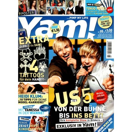 STARNEWS TOKIO HOTEL Holt euch die letzten Tix! HIGHLIGHTS Brangelina auf Mission! GOOD NEWS Richie - BAD NEWS AK 06 BEST PIX Lee, Tom, Mama Hilton & Co EMINEM Seine ganz private Hochzeit FERGIE zeigt ihre Kinderfotos... US5 Exklusiv auf 6 Seiten: Tourbericht BASS SULTAN HENGZT disst sie alle! THE RASMUS Ihre Backstage-Secrets NEWS CHECK Nachgeprüft - ON TOUR Star-History: MICHAEL BALLACK MAARJA ..Ich hasse Modejunkies! REVOLVERHELD rocken im Schnee DSDS MIT VANESSA IN DER WANNE TV-Story: HEIDIS GOLDENE REGELN Hot Stuff: JESSE MCCARTNEY Yam!-Award: DEIN SUPERSTAR 2005