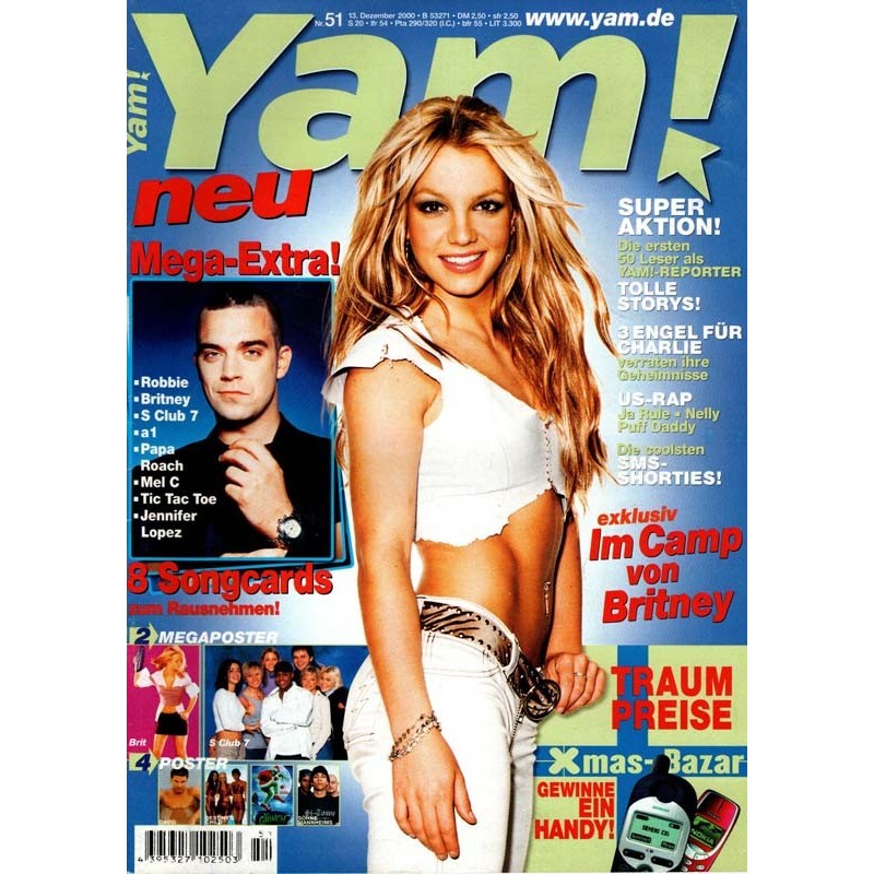 Titelbild: Mega Extra: 8 Songcards zum Rausnehmen: Robbie, Britney Spears, S Club 7, a1, Papa Roach, Mel C, Tic Tac Toe, Jennifer Lopez (evtl. enthalten)